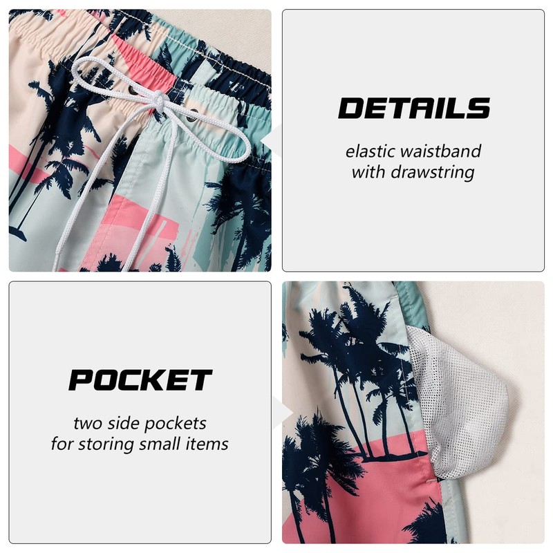 - 【Quick Dry】The beach shorts fabric, as well as the mesh lining and mesh pockets, allow for faster drying after swimming and more comfortable.
