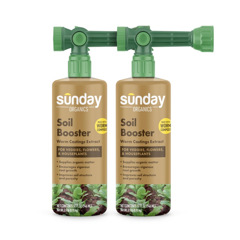 Sunday Soil Booster - Worm Casting Tea - Enhance Soil Health & Promote Vigorous Plant Growth - Made with Vermicompost Extract & Humic Acid - 32 Fl Oz, 2 Pack