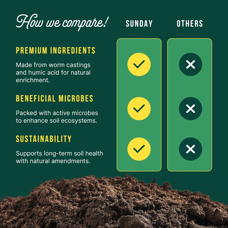- CONVENIENT APPLICATION: Simplify your gardening routine with our liquid soil amendment, easily applied with a hose-end sprayer or watering can, covering up to 200 sq. ft., and compatible with other Sunday garden solutions for seamless integration.