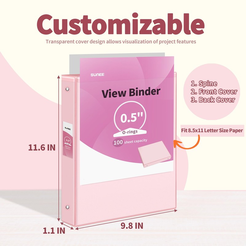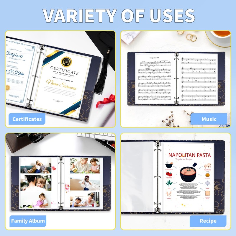 SUNEE Binder & Sheet Protector Bundle, 4pcs 0.5IN 3-Ring Binders & 50pcs Clear Sheet Protectors, 8.5x11