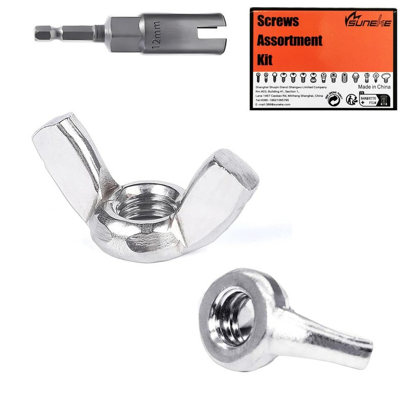 Suneke 1/4"-20 Stainless Steel Wing Nuts in Plastic Case with 12mm Driver, for Hand-Tighten DIY, Furniture & Mechanical Fastening (304 Stainless Steel, 55pcs)