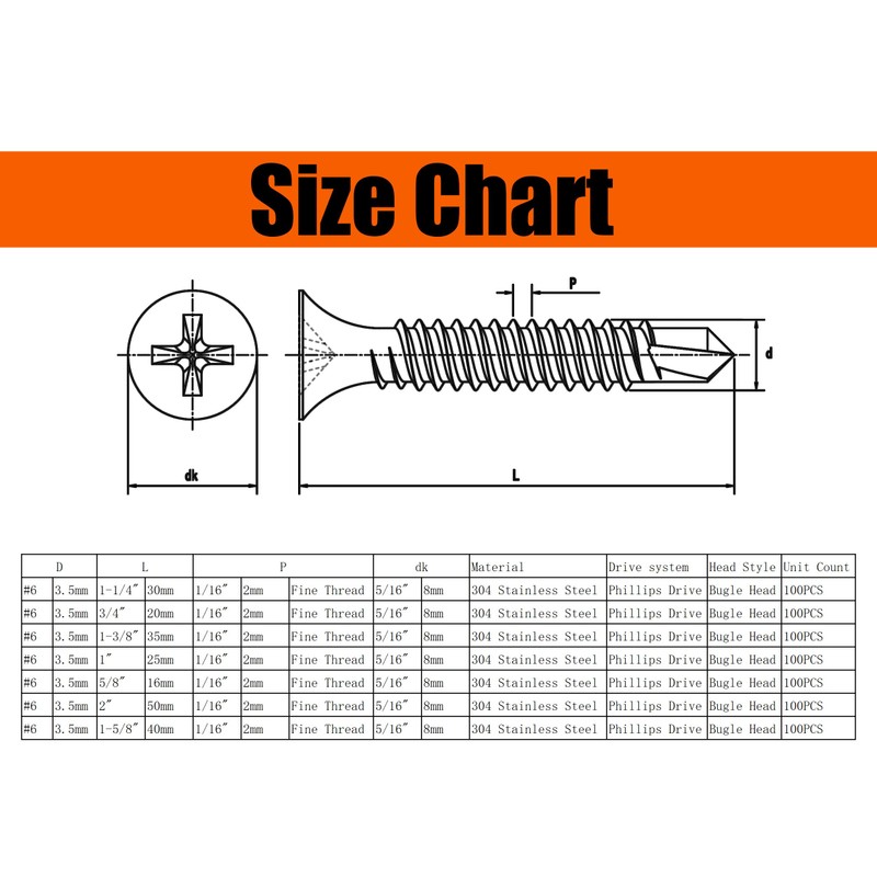 • Kit includes: 200PCS #6 X 3/4" High Hardness Drywall Screws & 1 Phillips Cross Slot PH2#2 Long Bit