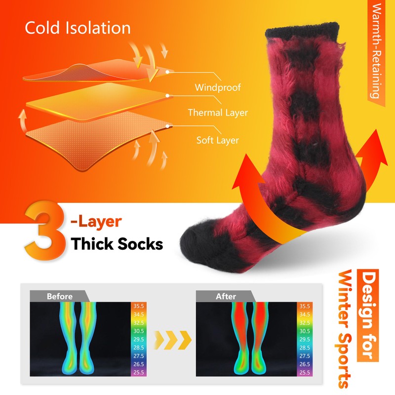 - Ultra-Comfy for Sweaty Feet: Worried about sweaty feet? Our warm socks for men boast a moisture-wicking material that pulls sweat away from the skin to keep your feet dry all day.These heated socks are designed with moisture wicking material that keeps our feet dry and warm, reduces odor and maintains comfort throughout the day. Winter socks are daily necessity for every family and our long warm socks are good choices for winter extreme cold weather.
