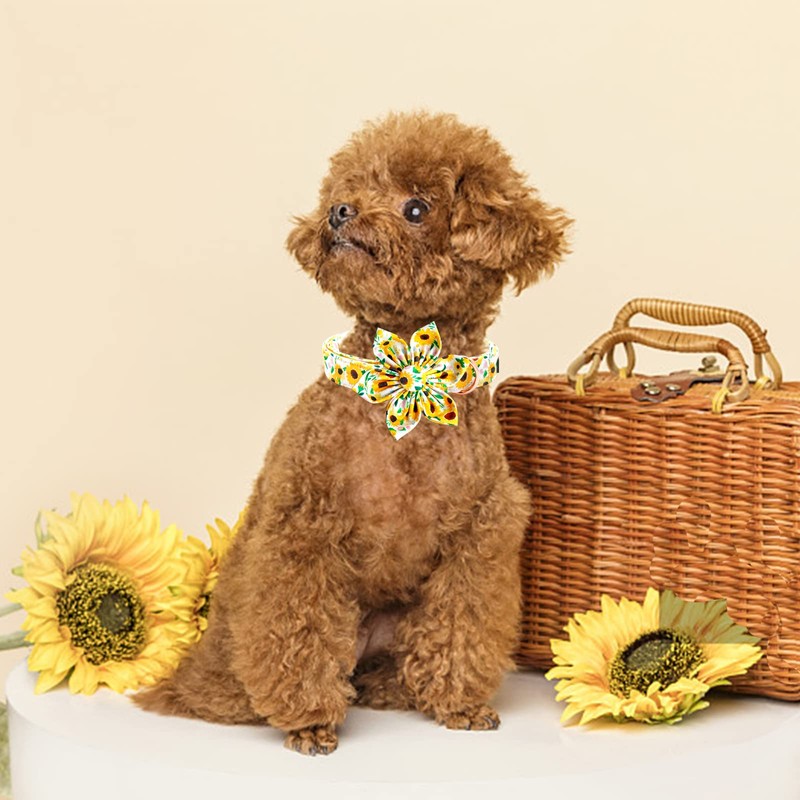 Sunflower Dog Collar - Adjustable for Large Girls with Flower Pattern