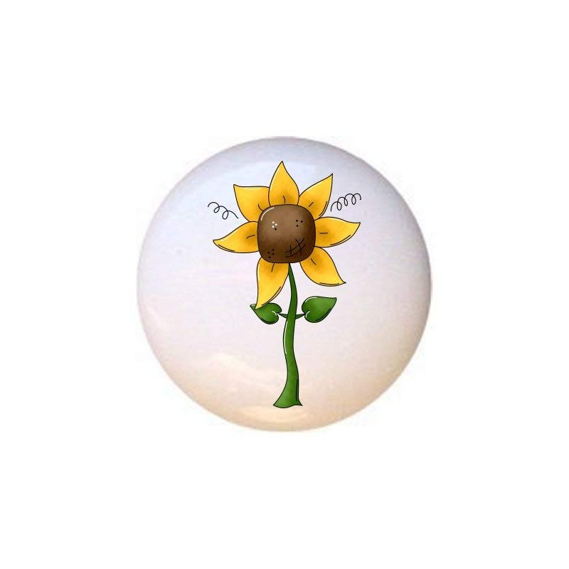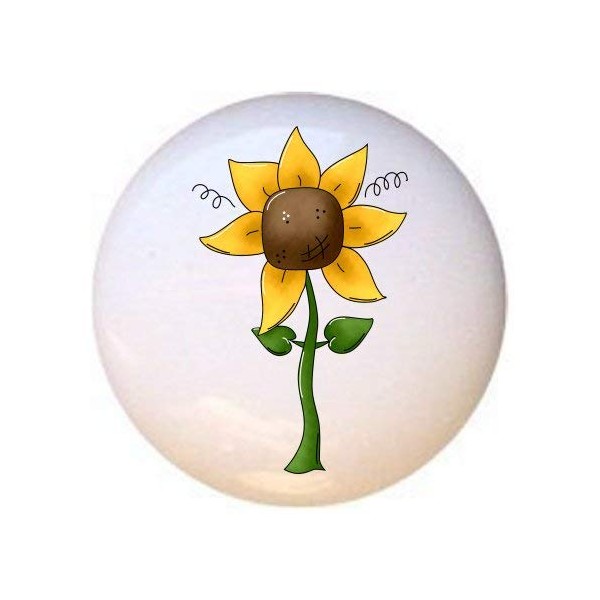 Sunflower from Birdie Bops II Country Bird Collection - DECORATIVE Glossy CERAMIC Cupboard Cabinet PULLS Dresser Drawer KNOBS