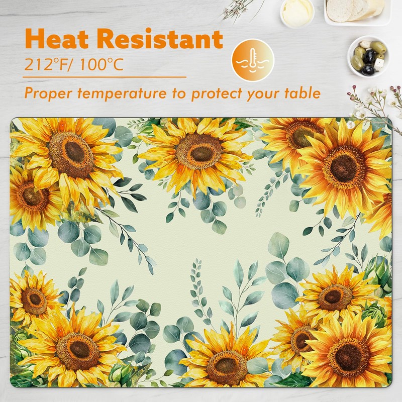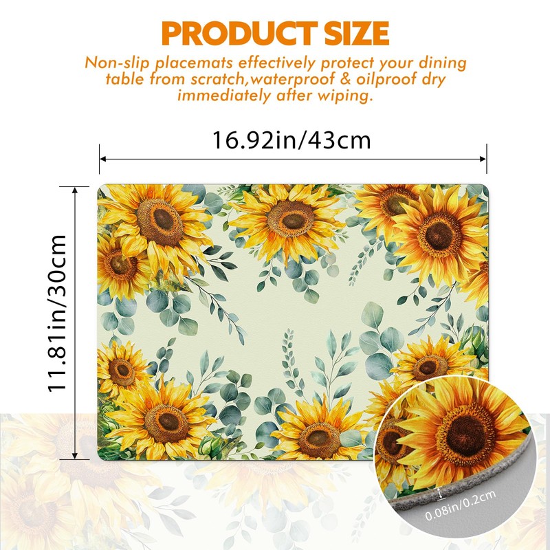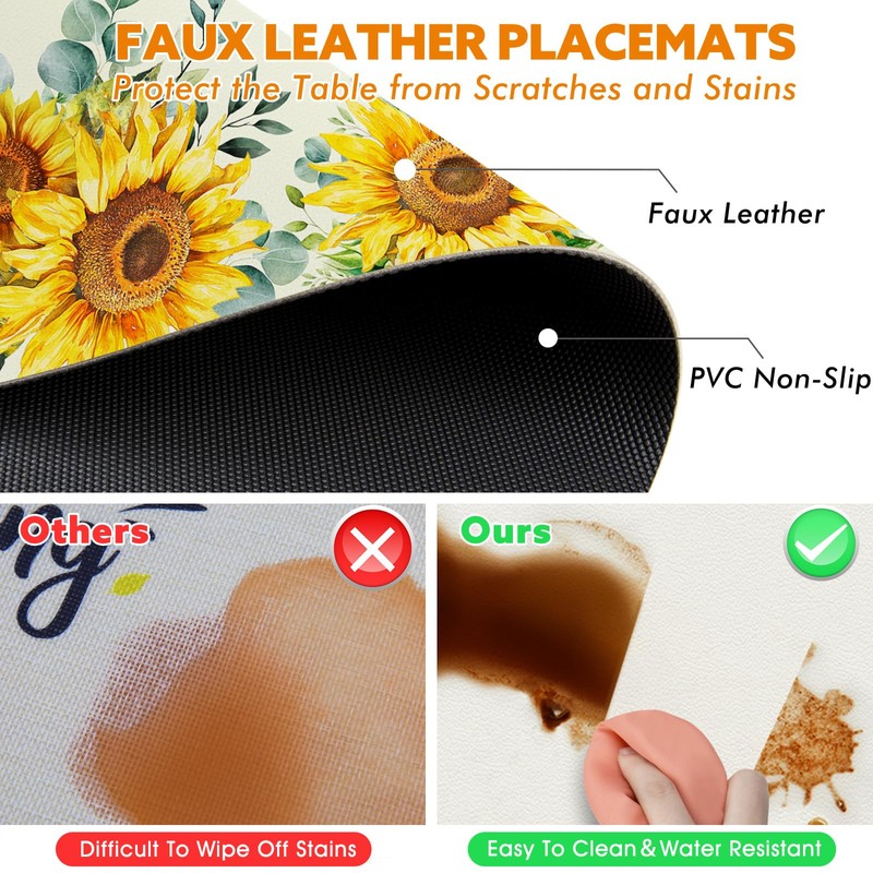 Sunflower Placemats Set of 4, Faux Leathe placemat for Dining Table, Heat Resistant Non-Slip Table Mats Kitchen Table Mats, Washable Material for Dining Table