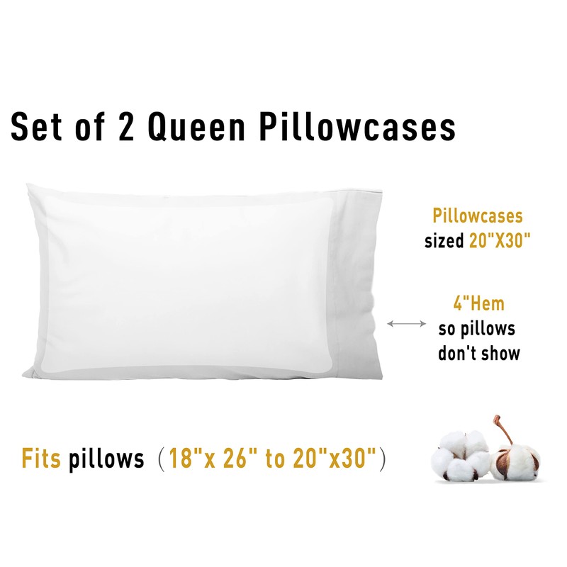- Excellent Craftsmanship: In a selection of solid shades, they let you update the look instantly. Variety in different colors to match your room decor and suitable for all seasons. Besides, the open type closure design makes washing more convenient. And the meticulous stitching ensures a longer lifespan for the cover. Our QUEEN pillowcases are 20" W x 30" L finished size.
