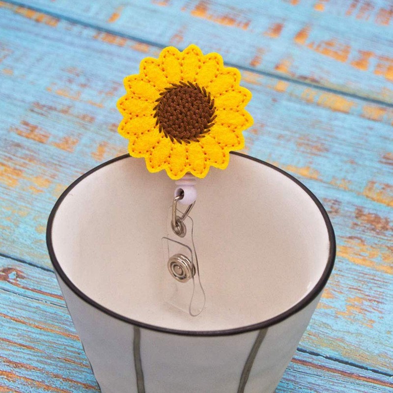 The sunflower badge holder is made of felt and metal, non-toxic and durable.