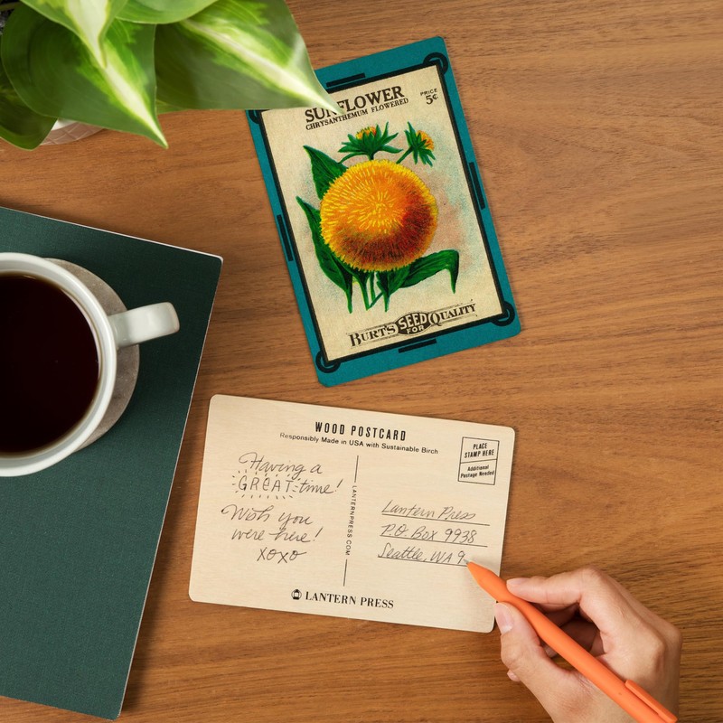- Sunflower Seed Packet (4x6 Birch Wood Postcards, 2-Pack Stationary, Rustic Home Wall Decor), high-quality sustainable wood printed in Seattle