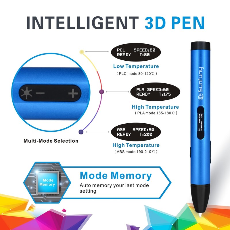 - ❤THREE MODE & PRECISE SPEED - Our innovative 3d printing pen is compatible with PCL/PLA/ABS. The 3d doodler pen will auto adjust temperature, no need to control it manually. 5-level precise speed gives optimal filament flow control for slower detail work or faster infill work.