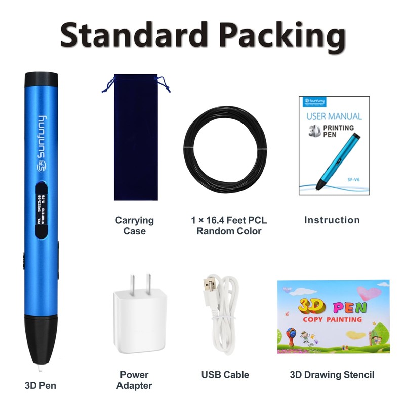 - ❤Standard 3D Pen Kit - It comes with a 3d printing pen, 1 random color 16.4ft PCL refill, mini 3d craft pen bag, USB cable, power adapter, 3d drawing stencil and manual. Everything you need to start a 3d creating trial.