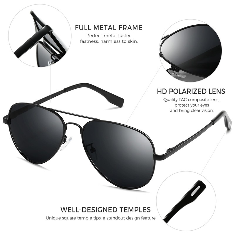 - Timeless Pilot Design: These Pilot sunglasses feature the classic Pilot style that never goes out of style, perfect for both men and women seeking a chic and sophisticated look, , suitable for all face shapes and unisex in style