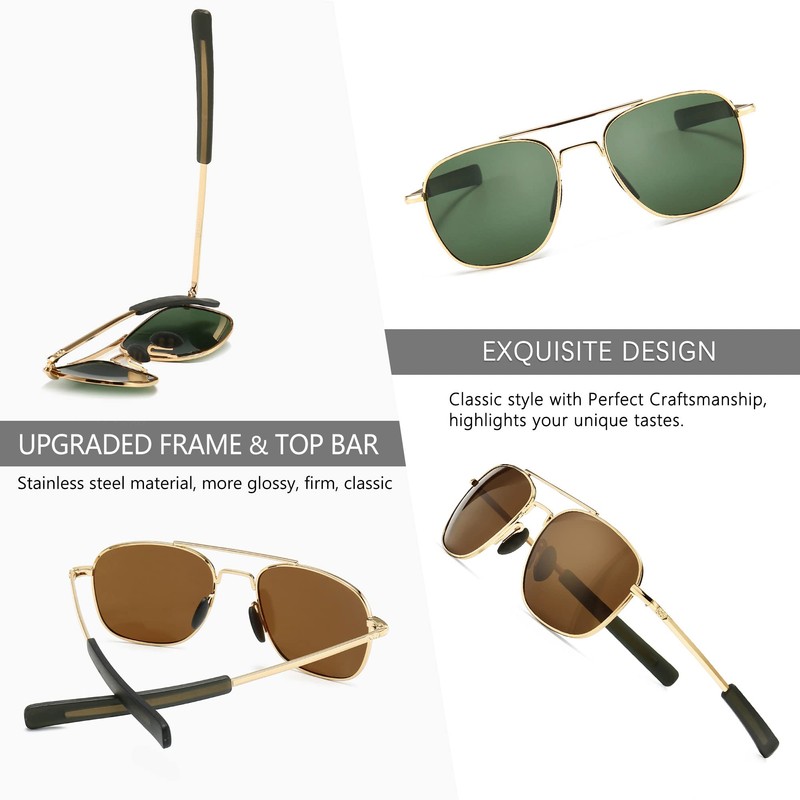 SUNGAIT Men's Military Sunglasses Polarized Pilot Style Bayonet Temples SGT285JKML-JKC UK
