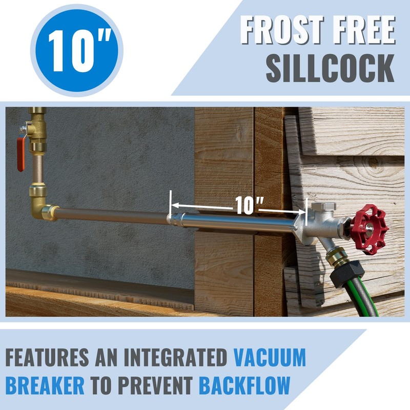 - 【PACKAGE INCLUDES】: MIP Frost Free Sillcock 10 Inch (1 PC); Sealing Tape (1 PC); 1/2 Inch Disconnect Clip (1 PC); .