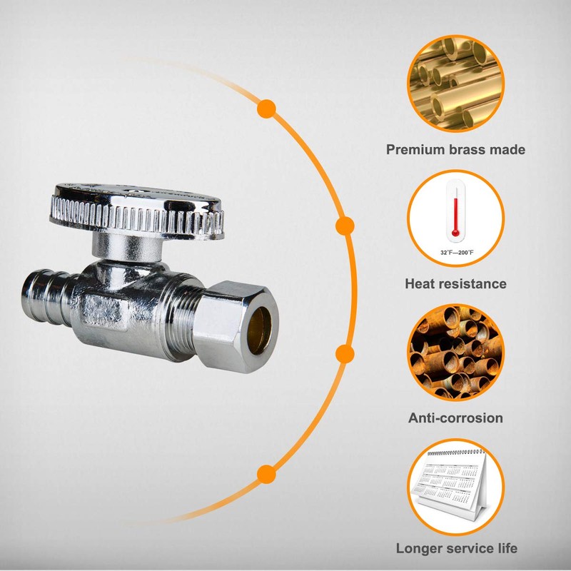 - 【 Package Includes】: Straight Stop Valve 3/8" Compression x 1/2" PEX (2 PCS)