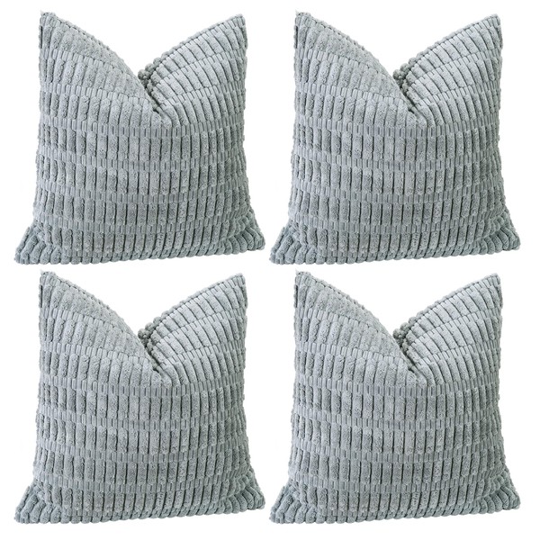 Sungeek Set of 4 Soft Corduroy Decorative Cushion Covers 60x60cm Square Striped Throw Pillow Covers 24x24 Inch for Sofa Couch Living Room Patio Farmhouse Boho Home Decor Pillowcases (Grey)