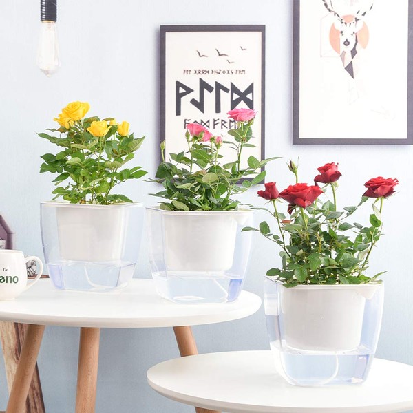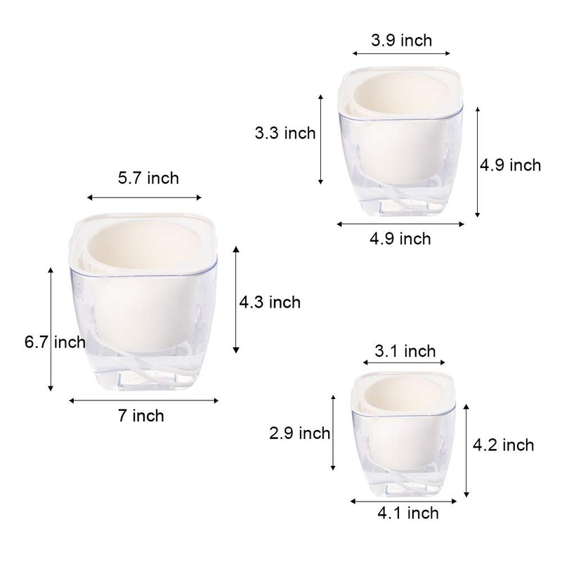 - Clean Looking -Blue,white,transparent these attractive colors and 3 different sizes are available for you to choose.The plain color match classic square shape design,making the pot so refreshing.One package contains 3 flower pots(3 pots are same size), so you can create a compelling landscape in any space.