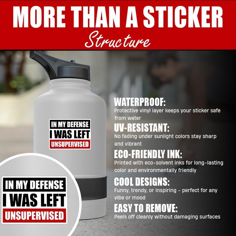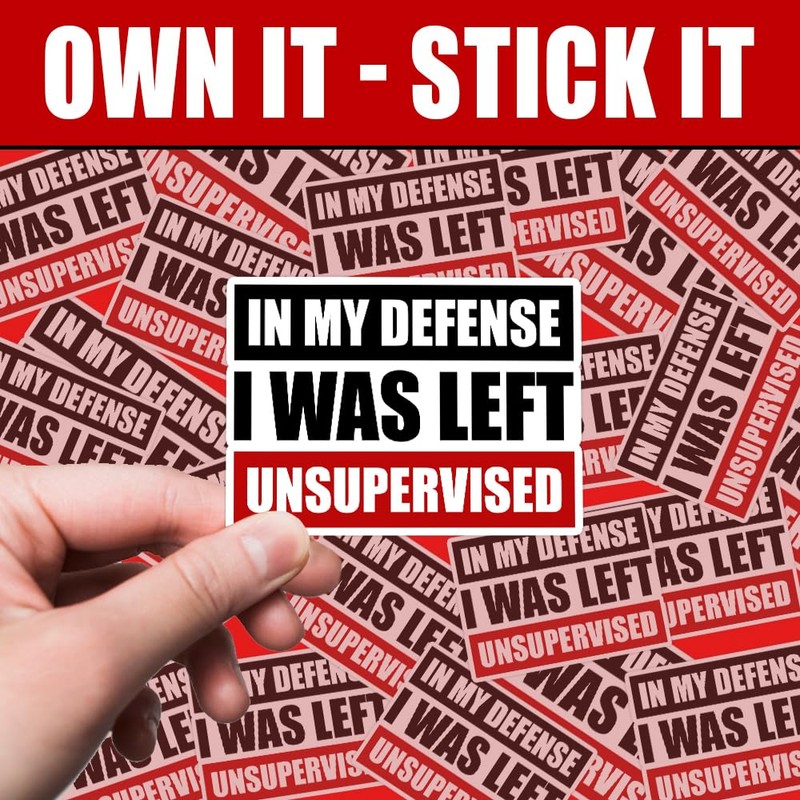 SUNHADO 3PCS [3X3 in] in My Defense i was Left Unsupervised Sticker Funny Sarcastic Motivational Inspirational for Water Bottle Tumbler Vinyl Decal Stickers for Kindle Laptop Phone Hard