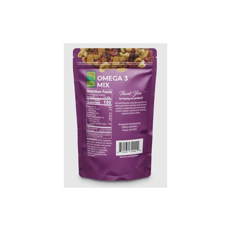 • PURE & SIMPLE INGREDIENTS: Sunhill Naturals’ Omega 3 Deluxe Mix is made with a thoughtfully selected combination of raw, unsalted nuts, seeds, and dried cranberries. Free from preservatives, artificial flavors, and additives, this mix provides a wholesome, nutrient-packed snack that supports a heart-healthy diet. Enjoy the natural goodness of clean, quality ingredients in every bite.