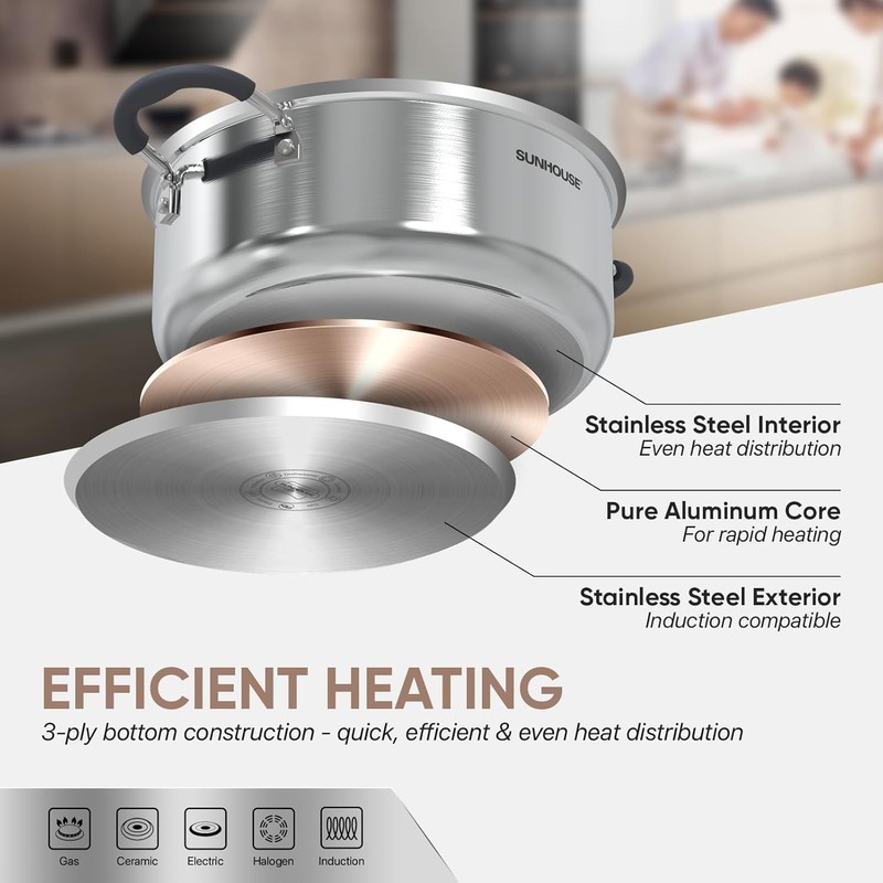 • Healthy Cooking Made Easy - Sunhouse's 4.6 Quarts stock pot which made of premium material is non-toxic and food-grade for better health, nutrition, and cooking. The high-quality stainless-steel cooking surface won't react with food or alter natural flavours for consistent cooking results