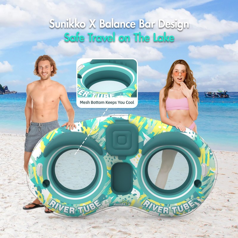 Sunikko X 5-in-1 Pool Floats Adult Heavy Duty River Tube, 2 Person Water Lounge with Backrests, Built-in Cooler, Cup Holders, Deluxe Pool Float for Summer Relaxation