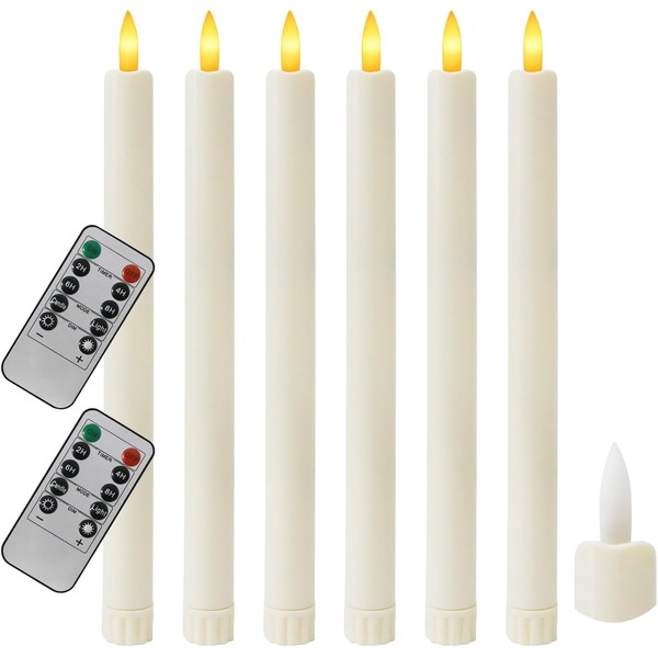 Sunjas 6PCS Flameless Taper Candles with 3D Flickering Flame Battery Operated Candles with 2 Remote with Button Cell Battery 10 Inch Ivory LED Candlesticks Window Candle for Christmas Home Decor