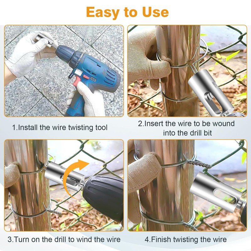- Perfect Compatibility: It only works with standard 11 gauge fence ties. This fence ties twist tool is match for most drills with speed of 0-600rpm or 3/8in keyless chuck drill