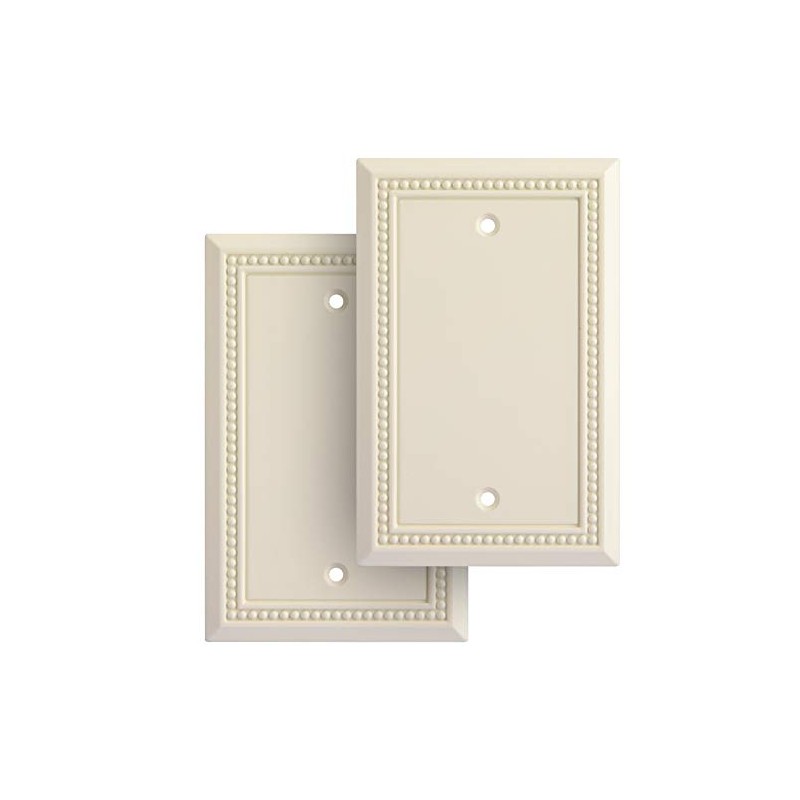 Sunken Pearls Decorative Wall Plate Switch Plate Outlet Cover, Durable Solid Zinc Alloy (Single Blank 2PK, Light Almond)