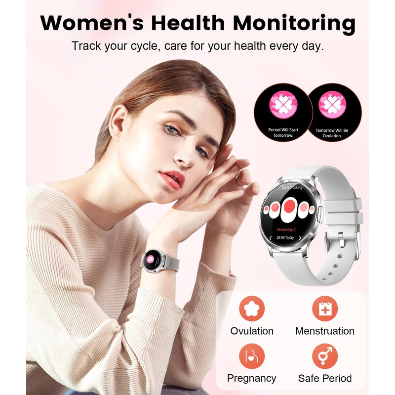 - 💖【Health Monitoring】 Sunkta focuses on women's health, and this FV16 smartwatch women is equipped with advanced features such as heart rate monitoring, sleep monitoring, and stress tracking to help you stay in control of your physical condition at all times. This pedometer watch digitizes daily health data and scientifically reminds you to adjust your lifestyle and face each day calmly. It also supports sleep monitoring to help you understand sleep quality. The fitness watches for women also has menstrual management function, caring for women's health with care. (Note: Data is for reference only, don’t be used as professional diagnostic information.)