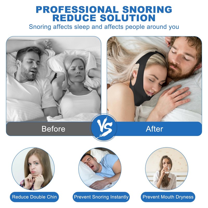 - [Snoring Solution]Anti-snore Chin Strap is a product that was developed specifically to address snoring. It helps you to snore less by not opening your mouth while you sleep and getting into the habit of breathing through your nose. With it, stop the noisy breathing and teeth grinding and enjoy quality sleep.