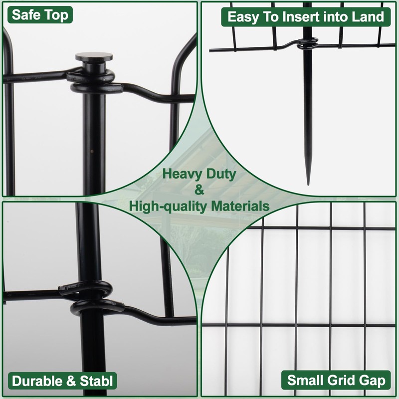 - 【Sturdy Metal Construction】The iron is coated with a thick coat of paint, and using an electrophoresis process, this fence protects against intruders and stands up to harsh weather.During use,please insert the connecting rod into the soil 6-8 inches to ensure stability.You don't need to worry about the fence being blown down by the wind!