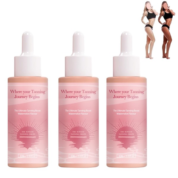 Sunless Tanning Drops To Drink, 3pcs Drinkable Tanning Drops Formulated to Naturally Enhance Melanin Production and Elevate Your Skin Tone for a Radiant, Sun-Kissed Glow (60 ml*3)