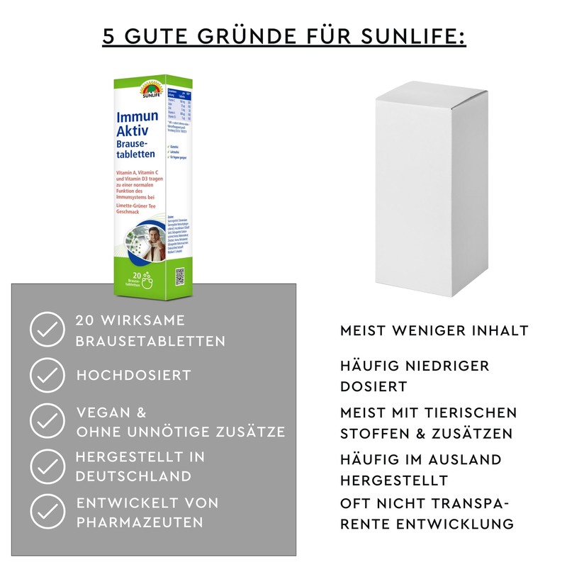 - Made in Germany Sunlife Immu Active effervescent tablets are manufactured in Germany to the highest quality standards