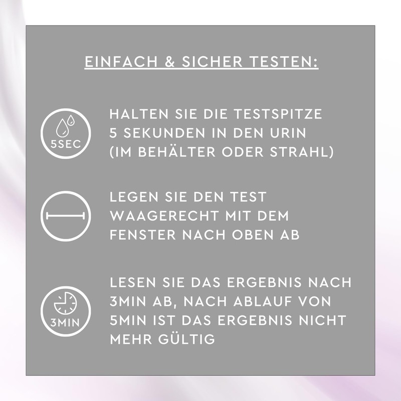 - Ideal for children – 5 ovulation tests for 5 days are included. A combination of antibodies determines the woman's most fertile days by the LH increase in urine.