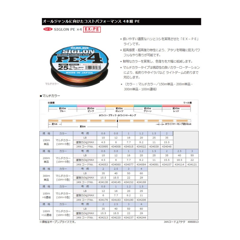 Sunline PEx4 Line Sigron PEx4 668.4 ft (200 m) 5 Colors, No. 1 16LB, J