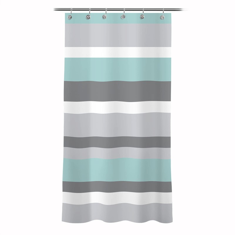 Sunlit Horizontal Stripes Water-Repellent Aqua Blue Gray 36 x 72 Inches Fabric Shower Stall Curtain with Reinforced Metal Grommets Refreshing Striped Design Bathroom Decor