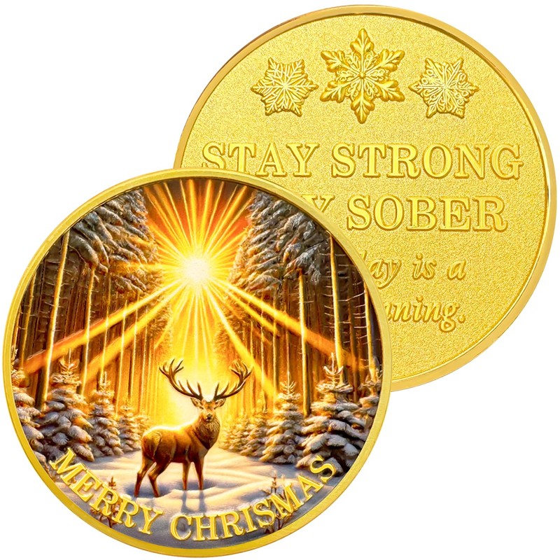 - Versatile Gifts for Any Occasion: The Sunlit Snowscape Deer Sobriety Chip is an ideal Gifts for both men and women, serving as a meaningful Sobriety Coin for celebrating recovery milestones or as a thoughtful holiday present. Its universal message of hope and renewal makes it a versatile and significant Gifts for anyone cherishing a sober lifestyle or supporting others on their journey.