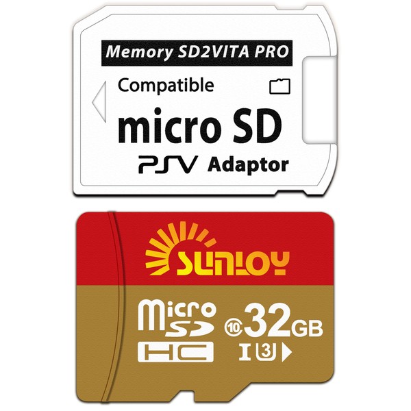 Sunloy SD2Vita 6.0 PS Vita Memory Card Adapter with 32GB Micro SD Card, High Speed microSDHC UHS-I Flash Memory Card with PSV Micro SD Card Adapter for PSV 1000/2000 PSTV FW 3.60 HENkaku Enso System