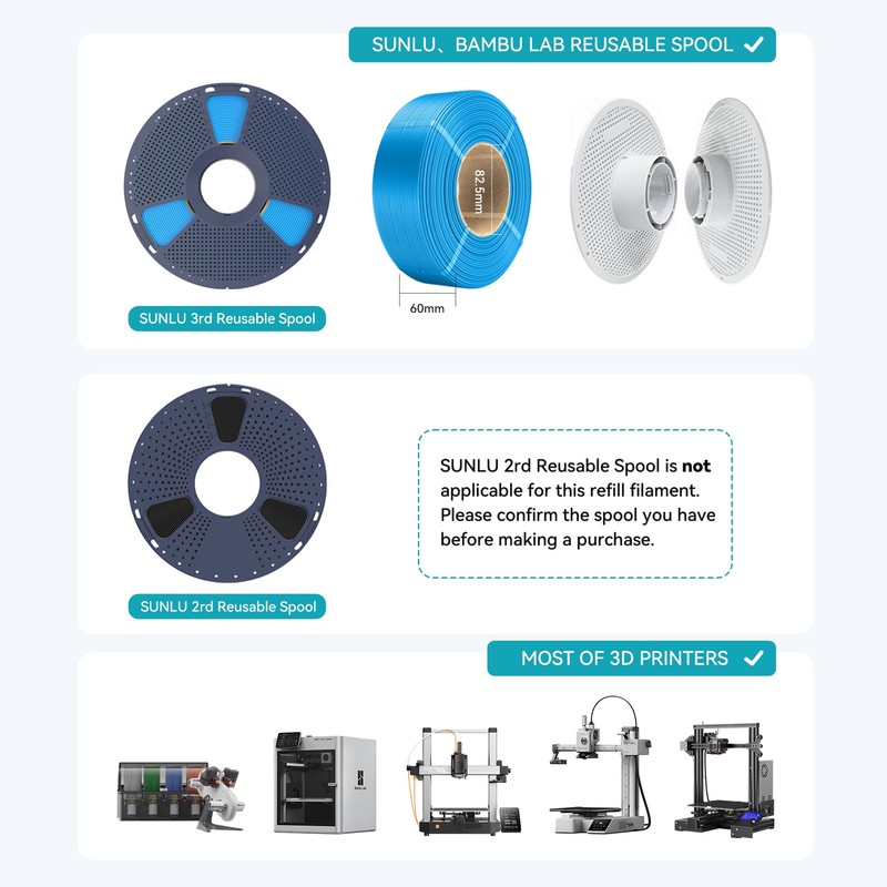 Compatible Spool: Reusable spool, SUNLU 2025 upgrade spool, compatible with Bambu Lab, ELEGOO and MarsWork refill filament