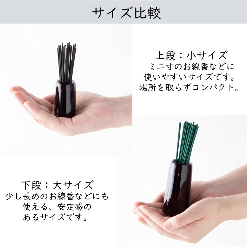 - There are 2 sizes so you can choose the size according to the incense you want to use. The compact and calm simple design and colors make it ideal for living rooms, mini altars and stage altars as well as keeping incenses close to the incense holder for yoga and meditation