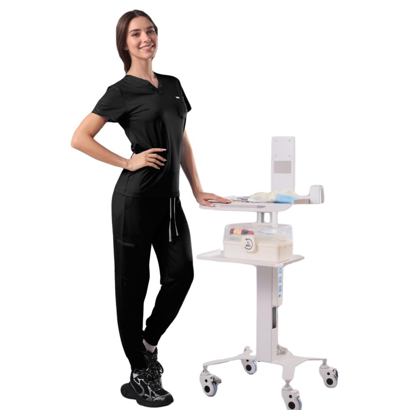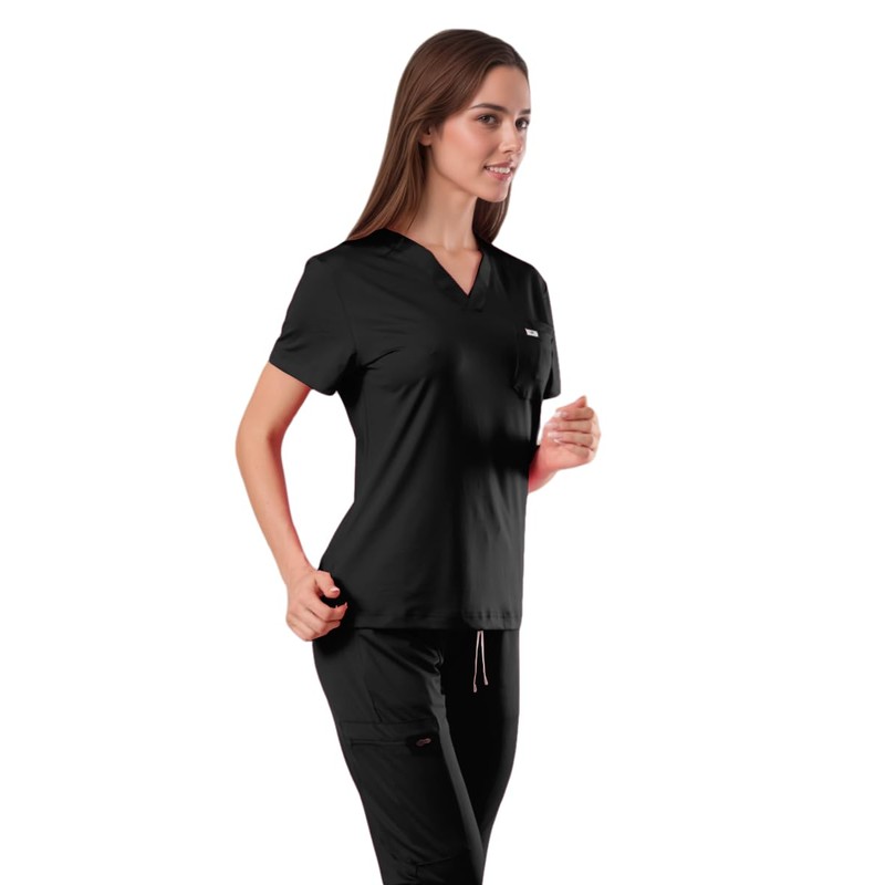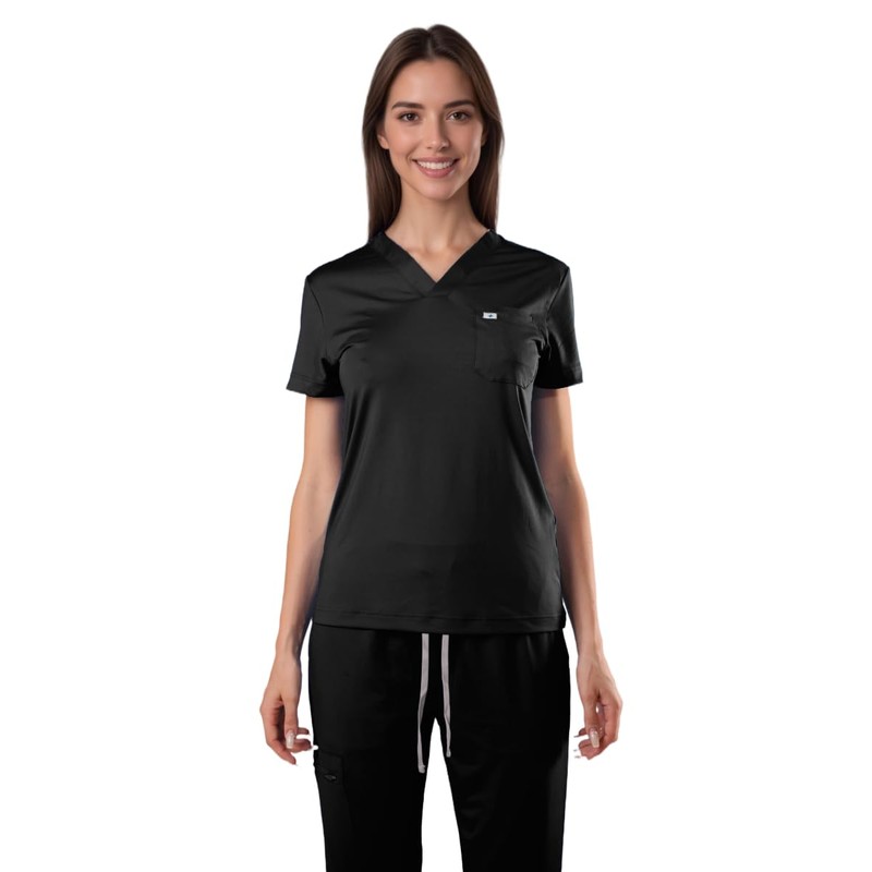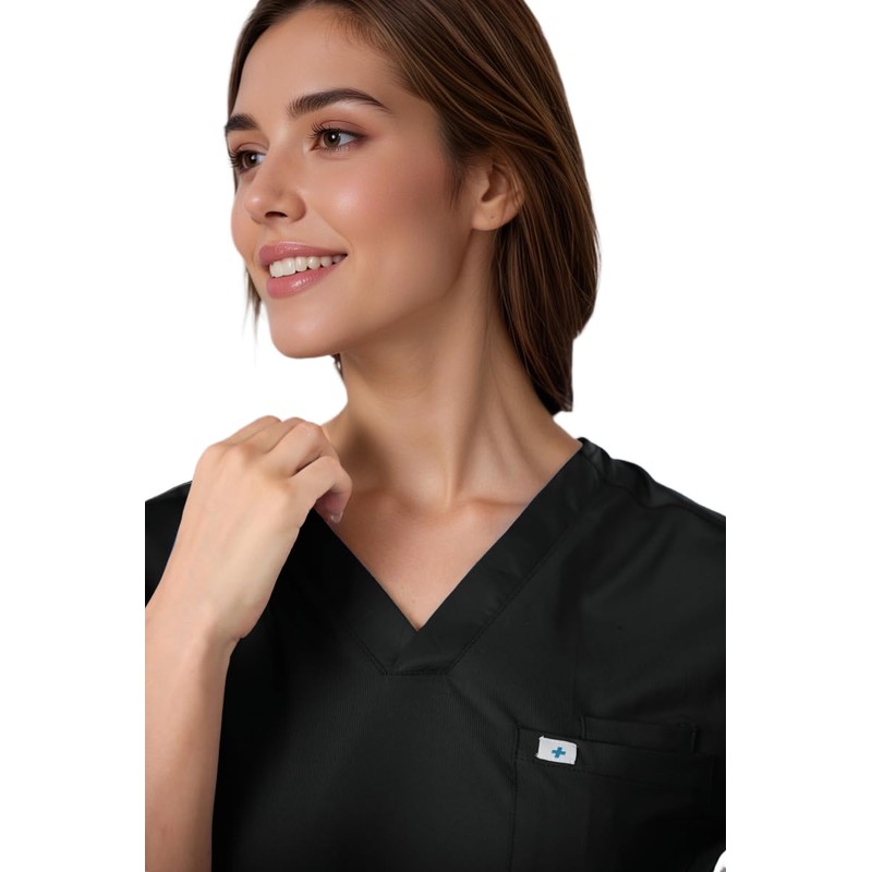 SUNME Women's Medical Scrub Tops - Ultra Soft, Easy Care, V-Neck Top Scrubs with 2 Pockets, 4-Way Stretch & Wrinkle Resistant Black