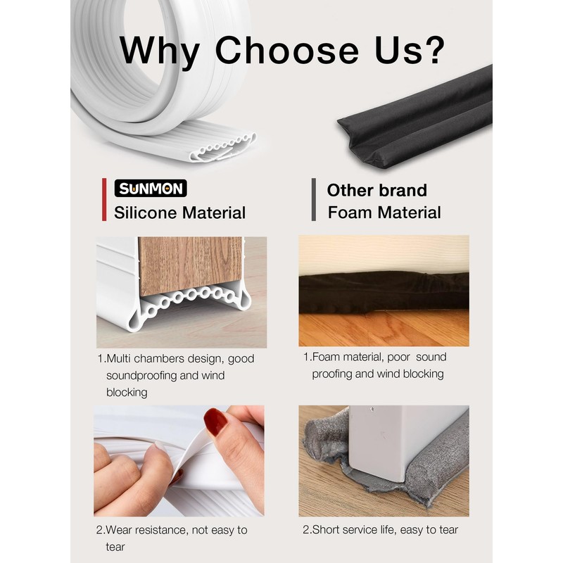 SUNMON Ultimate Silicone Door Draft Stopper - Keep Your Home Cozy and Quiet.