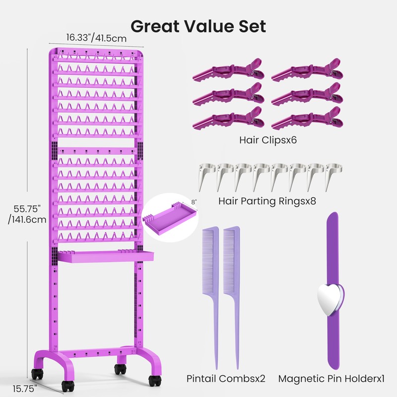 - 【280 Pegs & Detachable Tray】Featuring 280 pegs, this double-sided braid rack provides ample space to handle even the largest braiding projects with ease. The detachable tray can be effortlessly attached to any crossbar, ensuring your salon essentials are always within arm’s reach for a smooth workflow