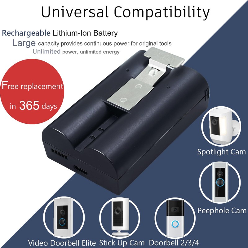 • 【FULLY Compatible】:The replacement battery 100% compatible with Ring-Doorbell Camera 1 and 2, Spotlight Camera and Stick Up Camera,with Ring-Doorbell 2/3/4, Spotlight Camera & Stick Up Cam Indooor and Outdoor
