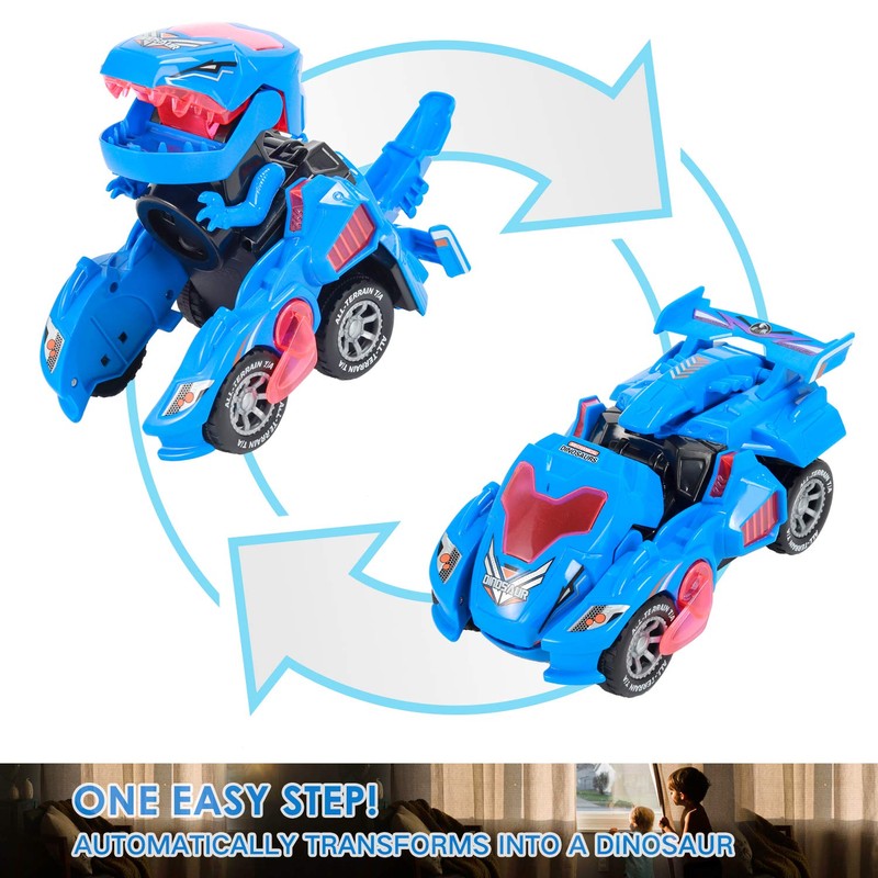 • 🦖 UPGRADED DINOSAUR CHARIOT -- 2 IN 1 transforming toys, it's a dinosaur and a transforming car. This car will automatically turn into a dinosaur!