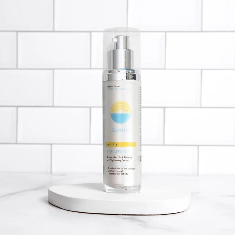 This One’s For The Neck Enhance your skincare regime by targeting the skin of your neck and décolleté. Our Story As a former beach lifeguard, Board-Certified plastic surgeon, Alexis Parcells, MD personally understood the effects of sun damage and air pollution on our skin and in her clinical practice, she saw hundreds of women trying to reverse years of skin damage. In 2020 she set out to create the most impactful skincare regimen. Built on a promise to use the cleanest ingredients, at a medical-grade power to achieve clinical and lasting results. REDUCES FINE LINES, WRINKLES & SKIN SAGGING Skincare for your neck and décolleté is just as important for feeling confident as for your face. The Affirmer neck firming cream is a medical grade formula containing a uniquely blended peptide complex that promotes cellular regeneration and strengthens the fragile dermal-epidermal junction. By stimulating elastic synthesis, it fights against sagging and improves resistance to gravity. Furthermore, it targets the skin in your neck in order to reduce wrinkles and fine lines. The skin firming cream has an immediate and durable tightening effect. KEY BENEFITS - Decrease in the length of deep wrinkles - Decrease in the depth of wrinkles - Decrease in skin roughness DIRECTIONS FOR USE: Apply the anti wrinkle cream to the neck and décolleté while working towards the jaw line. Allow to absorb before applying additional products. Can be used twice daily or as directed by physician.