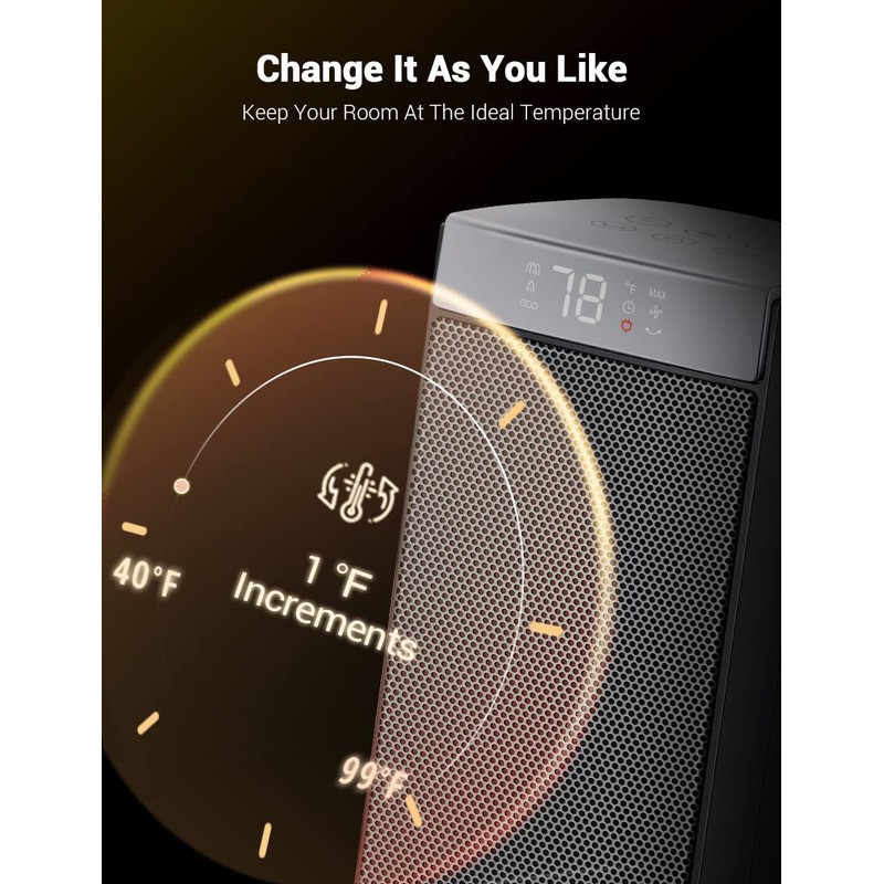 - 【Precise Eco Mode】Our Space Heater comes equipped with a precise temperature sensor that keeps the temperature of any room at the exact temperature you want. It also comes with a smart eco mode that maintains the ideal room temperature and balances energy consumption to fit the required heating needs at any moment.