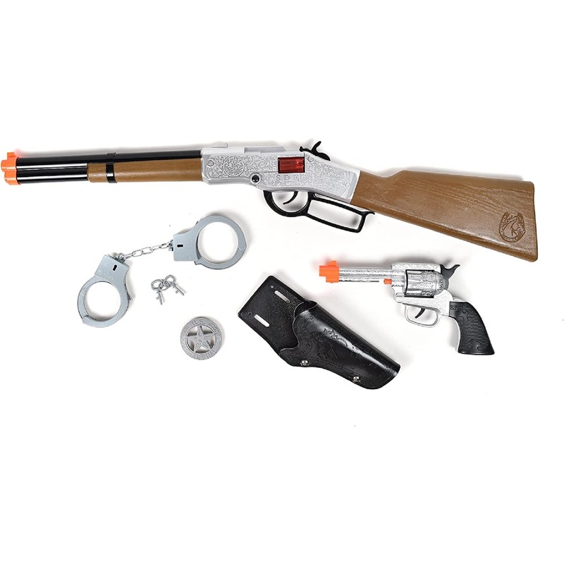 Including Everything You Need To Tame The Wild West, This Playset Is Perfect For Indoor Or Outdoor Pretend To Play. Why Choose Between Blaster Or Rifle When You Could Have Both? Realistic Electronic Sounds Make Playtime Even More Fun. Wrangle Any Outlaw With Sturdy, Metal Handcuffs, Complete With Working Keys, And A Safety Lock. Make Sure You Have All Of The Accessories You Need For A Day Of Role-Playing With The Badge And Holster.Established In 2012, Sunny Days Entertainment, Llc Is Comprised Of A Core Group Of Toy Industry Veterans With The Mission Of Spreading Sunshine Through Traditional, Creative Play. Our Focus Is To Enhance The Experience For Consumers In Order To Expand Children'S Imaginations And Encourage Them To Unplug And Play. At Sunny Days, Each Toy Is Designed With Safety In Mind. All Of Our Toys Are Thoroughly Tested To Meet The Highest Standards Possible. We Stand By Our Superior Quality And Want To Ensure Complete Satisfaction. If You Experience Any Trouble, Please Reach Out To Our Team So We Can Make It Right.