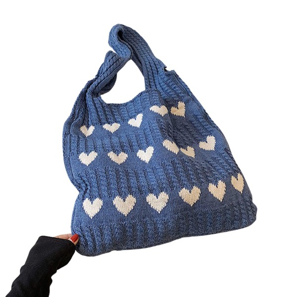 Sunny Glow Knit Bag, Tote Bag, Knit Tote Bag, Knitting Bag, Shoulder Braid, Heart, Cute, Korea, Large Capacity, Lightweight, A4 Size (Blue), red