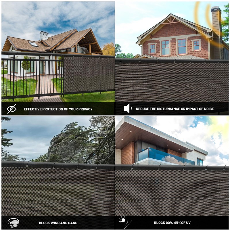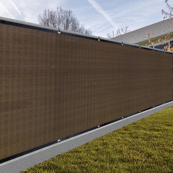 SUNNY GUARD Privacy Screen Fence 5' x 114' Brown Heavy Duty Dustproof Denoise Fencing Mesh Fabric Shade Net Cover for Outdoor Wall Garden Yard Pool Deck(Customized)
